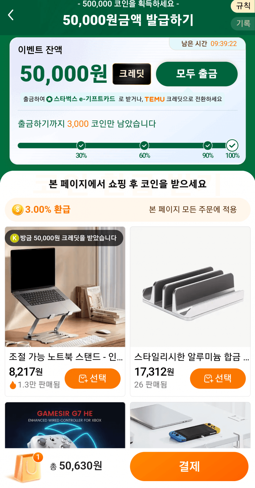7.테무에서 가장 쓸만한 이벤트는 10만 크레딧 + 크레딧백 + 할인카드 (장바구니-미스테리 할인) + 슈퍼 할인임.